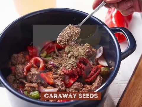 Remove the lid and stir in the paprika, caraway seeds and marjoram or oregano, the tomato puree, the tomatoes, beef and beef stock. Bring to the boil, then cover and simmer very gently for 45 minutes, until the beef is soft and tender. Alternatively, you can put it in the oven at about 15˚C. Season with salt and plenty of black pepper. Add a little more stock if the sauce is too thick.