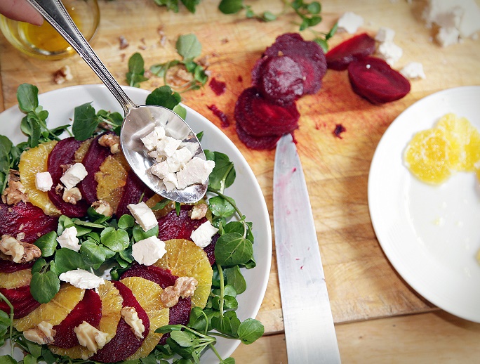 Sweet, nutritious and very, very tasty, beetroot contains quite astonishing qualities for the athlete. As well as being packed with vitamin C, plus important minerals such as potassium, calcium, folic acid and iron, recent studies show that the nitrates in beetroot help the body use oxygen more efficiently, thereby boosting performance. It also adds a delicious vibrancy to this immune-boosting and colourful salad. A perfect winter salad starter or light main, served with a hunk of crusty wholegrain bread.